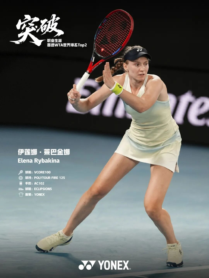 强大的发球是莱巴金娜冲击世界第一最坚实可靠的保障,印第安维尔斯站落幕后她本赛季的ACE球总数已经达到148记,在所有女子球员中独占鳌头。VCORE100球拍扩大的甜区帮助她在发球时将身体动能完美转化为出球优势,而良好的旋转、控制更大程度提升了发球的精确与稳定。北美“阳光双赛”全新系列YONEX战袍靓丽上身,莱巴金娜脚踏的ECLIPSION 5战靴上,大本钟的旁边也早已增添了一只憨态可掬的袋鼠,分别象征着她的两座大满贯冠军头衔。